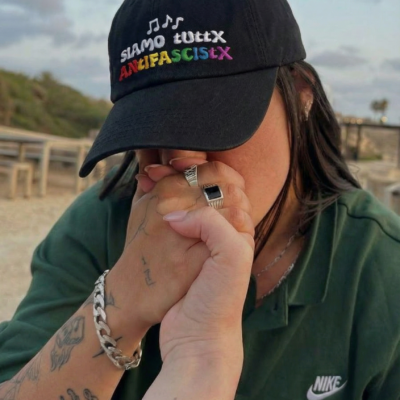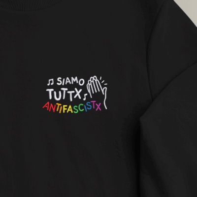 L’idée de cette collection est simple : reprendre le contrôle du récit anti-fasciste. Porter des vêtements de cette collection, c’est donc : un acte de résistance quotidien, une façon d’être facilement identifiable entre nous & surtout…un aimant à compliments !