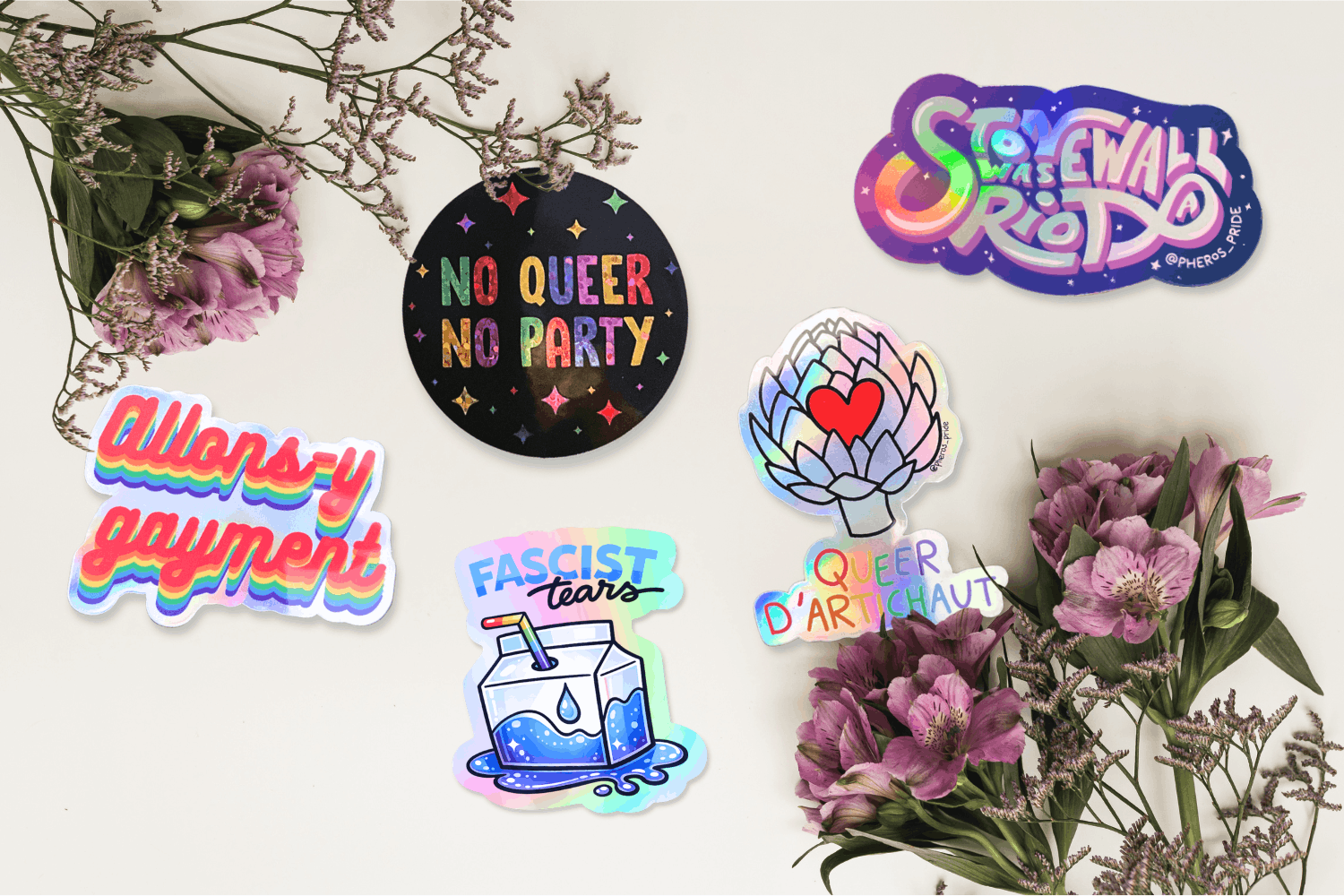 “Phèros a vu le jour lors de la Pride 2018. On est parti·e·s d’un constat simple : les couleurs arc-en-ciel de notre communauté ne sont visibles qu’un seul jour par an : lors de la Pride. Alors on a décidé de créer Phèros : une boutique de vêtements et accessoires LGBT+ qu’il est possible de porter 365 jours par an.