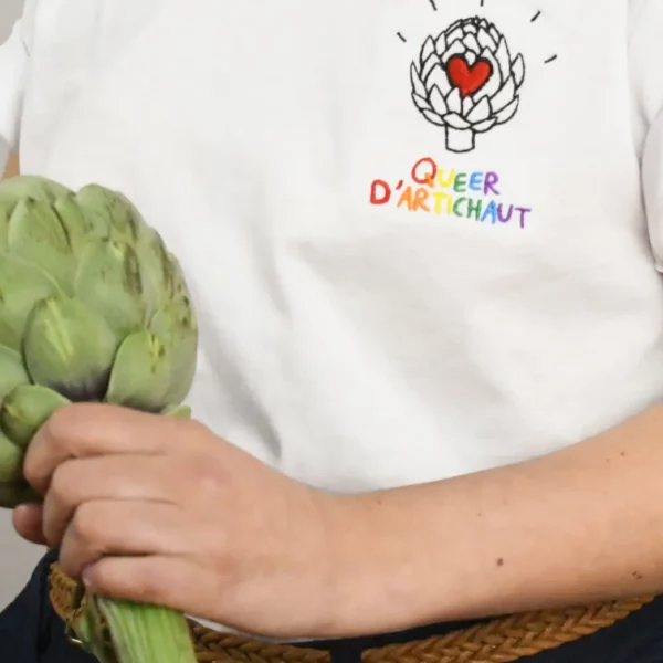 On s’en rappelle comme si c’était hier : c’était quelques jours après la pride de 2019. Et on avait décidé de broder aux couleurs de l’arc-en-ciel un t-shirt blanc avec le mot « Pride » sur le coeur. C’est devenu un classique de la marque, et à l’heure actuelle, il est encore sur la boutique !
